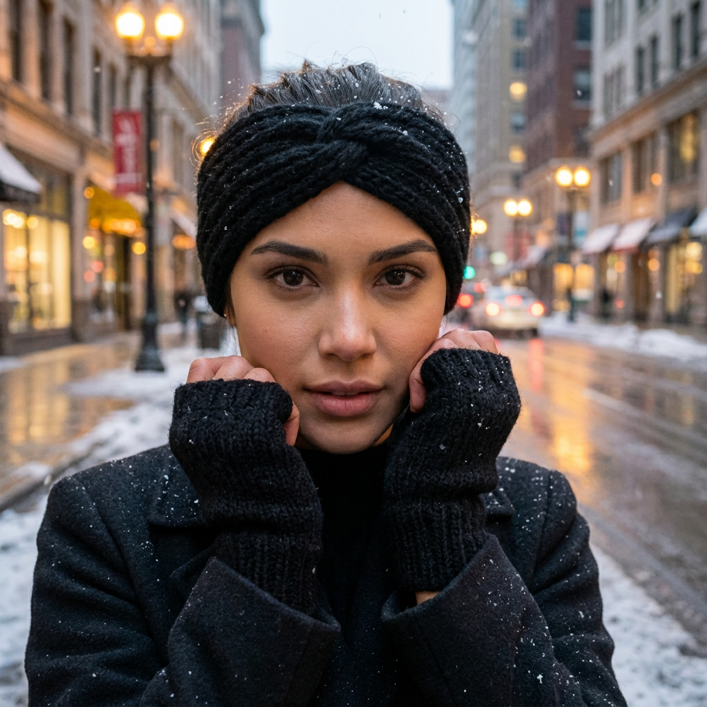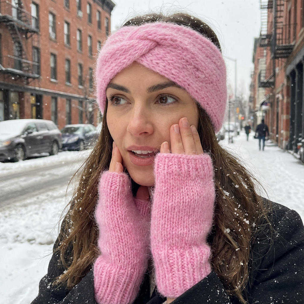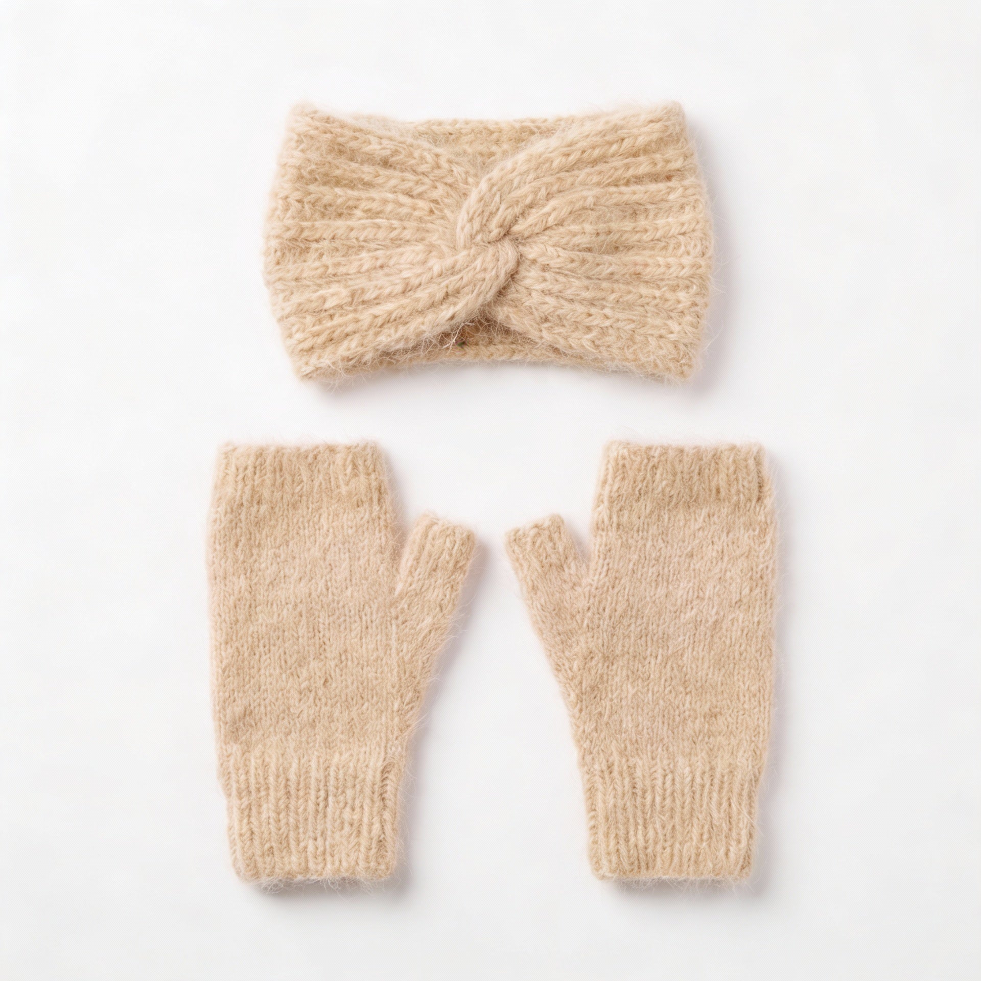 Mitaines + Bandeau d'hiver - Pack 2 en 1 tricoté main